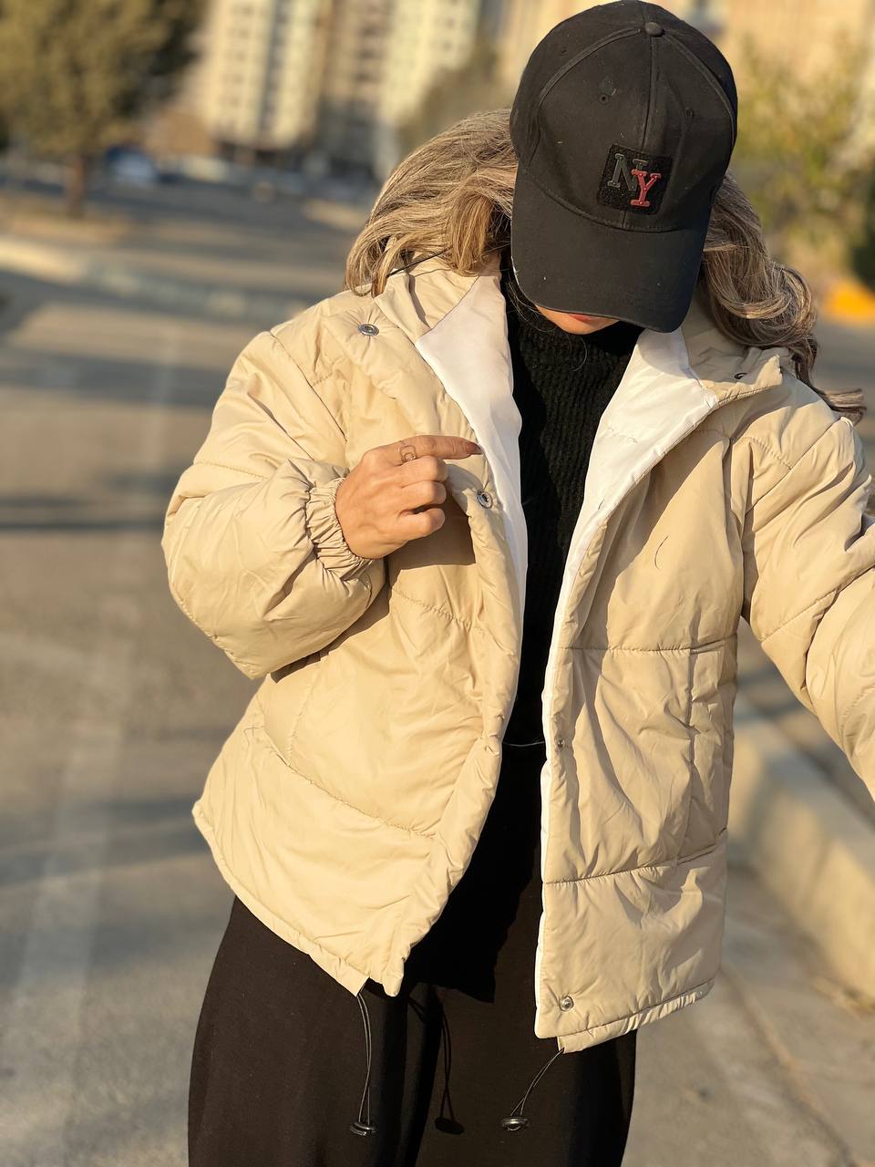 نهال: داخلش پشم شیشه گرم ۱۵۰،استر دارد ،پایین کار با کش میشه بسته بشه ، کلاه دارد ،دور سینه ۱۲۰،دور بازو ۴۴