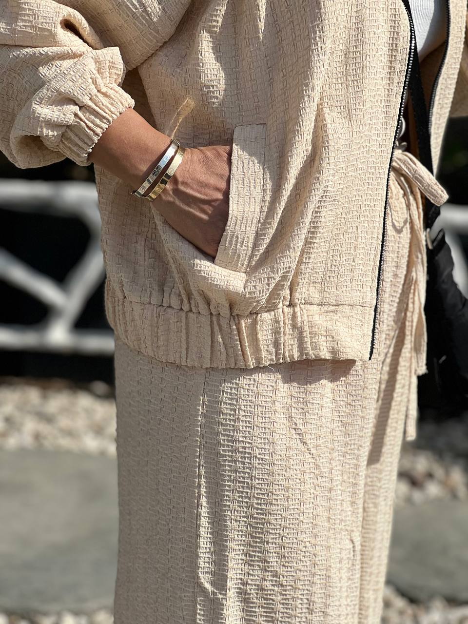 جنس پارجه عنکبوتی مناسب فصل بهار و تابستان دور کمر شلوار کلا کش دوزی شده و پل کمر دارد